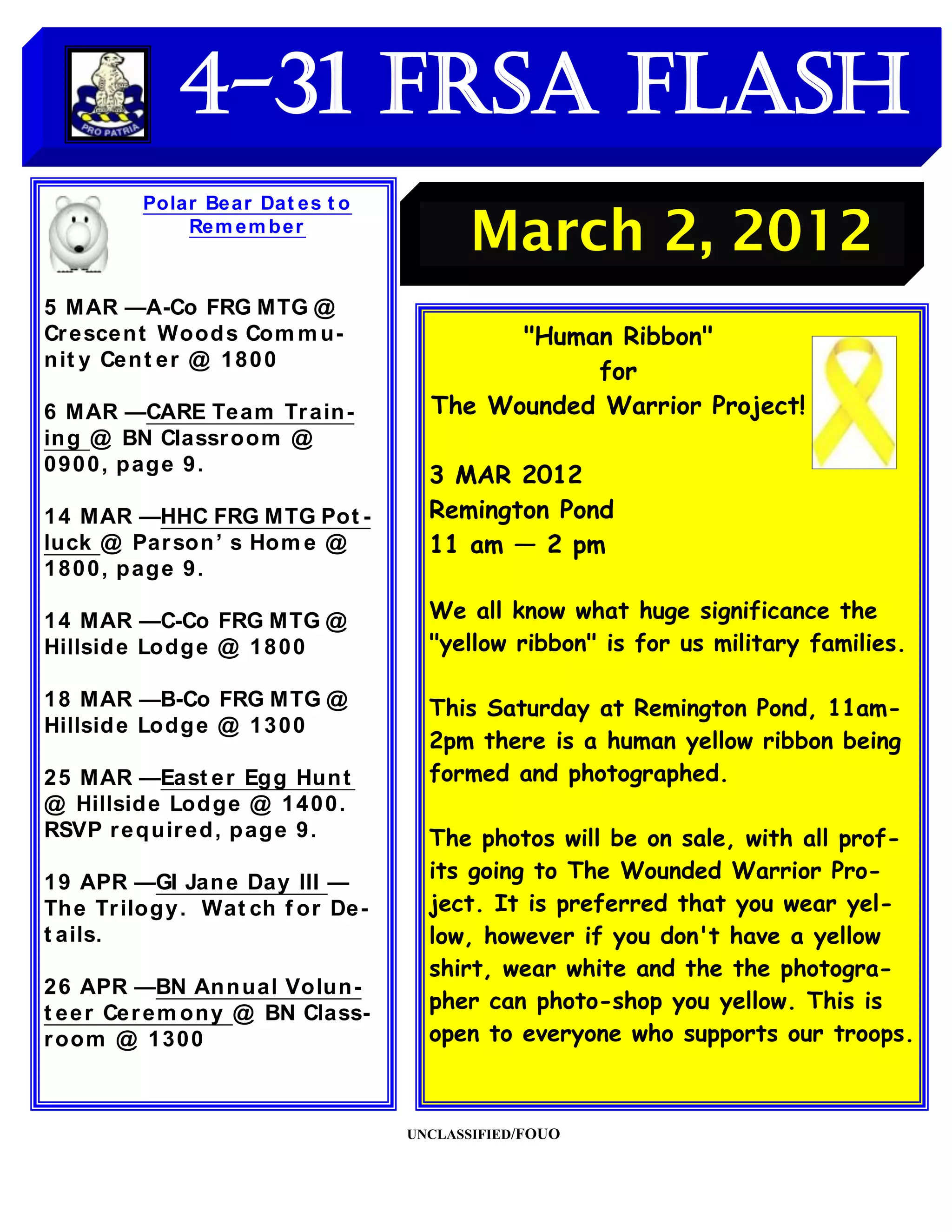- Family Readiness Group meetings on various dates