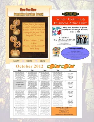 - A men's and women's fashion show on October 6th at the PX.