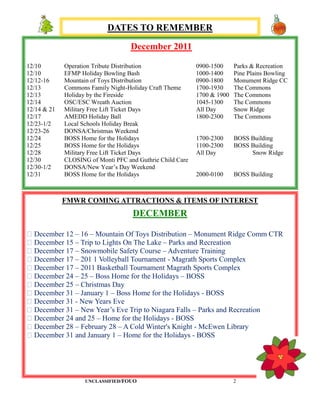 - Family Readiness Group meetings and holiday parties on specific dates in December