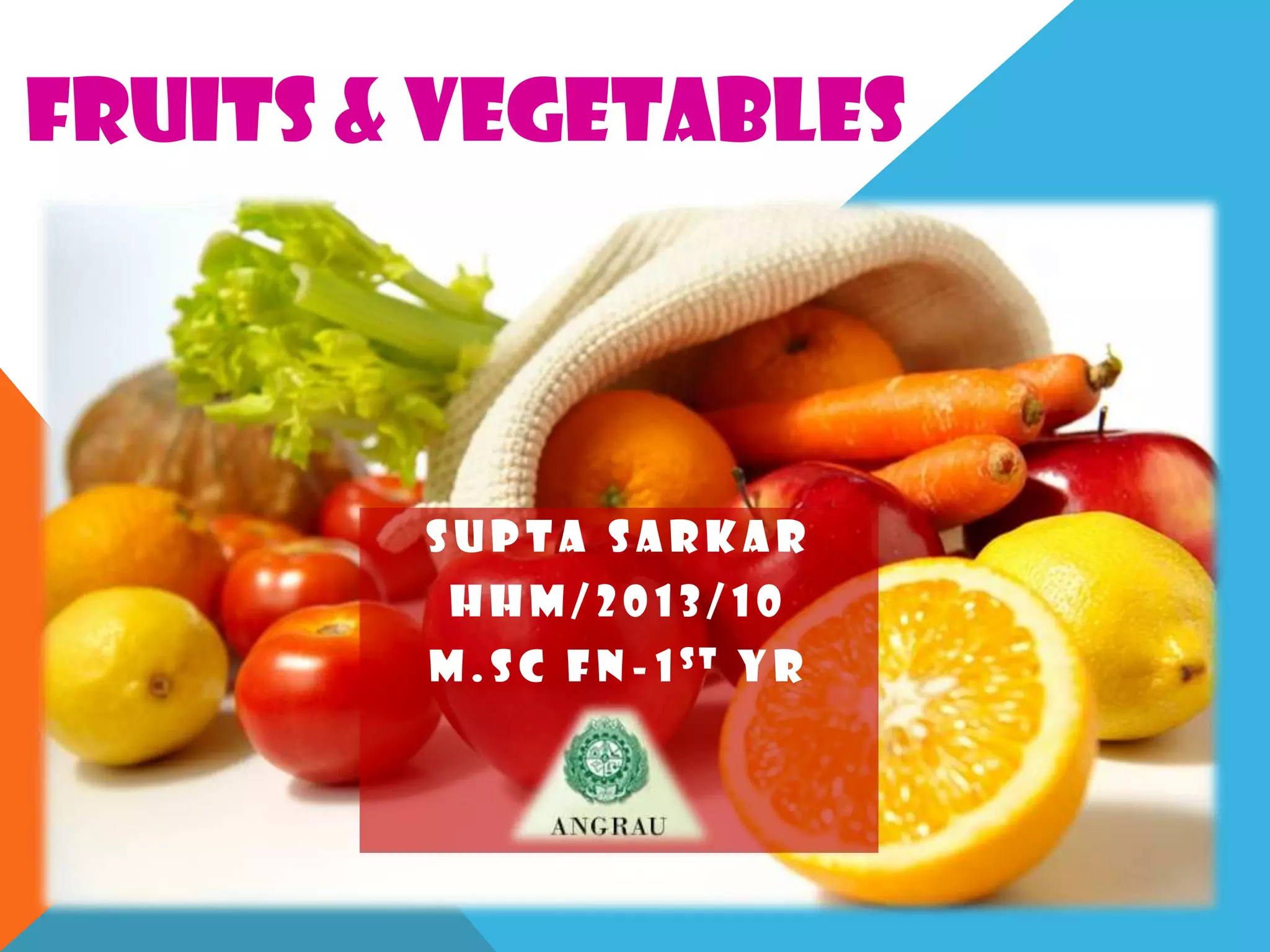 This document discusses the structure, composition and classification of fruits and vegetables. It begins by describing the simple and complex cell tissues that make up fruits and vegetables, including parenchyma, dermal, vascular, collenchyma and sclerenchyma tissues. It then examines the chemical composition of plant materials, listing the main components as carbohydrates, proteins, fats, vitamins, minerals, water and phytochemicals. The document proceeds to classify and describe different types of fruits and vegetables in detail. It explores the nutritional profiles, pigments, ripening processes, storage considerations and enzymatic and non-enzymatic browning reactions of fruits and vegetables.