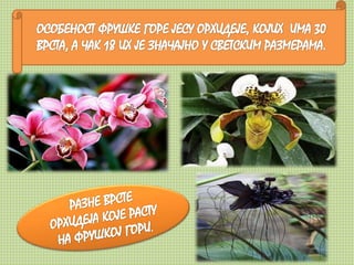 ФРУШКЕ ГОРЕ СУ РЕЛАТИВНО КРАТКИ И ПЕРИОДИЧНИ. ОНИ СУ У НОВИЈЕ ВРЕМЕ УГЛАВНОМ ПРЕПЕЧЕНИ, ТАКО ДА ПЛАНИНА ИМА ОКО ДЕСЕТАК ЈЕЗЕРА.