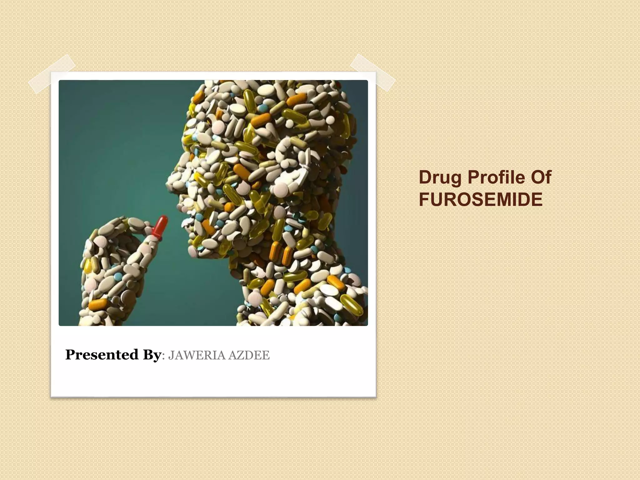 Furosemide is a loop diuretic used to treat fluid retention caused by conditions like heart failure and liver disease. It works by inhibiting sodium reabsorption in the kidneys, which increases sodium and water excretion through urine. Common brands include Lasix. It has a fast onset of 30-60 minutes when taken orally and a duration of action of 6-8 hours. Adverse effects can include electrolyte imbalances and dehydration, so caution is needed in patients with renal or liver impairment. Drug interactions can occur with other diuretics, NSAIDs, and some antibiotics.
