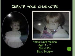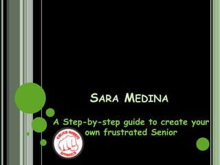 The document provides instructions for creating a character profile for a frustrated senior by outlining life events that contribute to their frustration, including changing schools, losing friends, taking challenging courses, and worrying about the future. The character, Sara Medina, experiences being an only child, glory that later crumbles, school closures, embarrassing moments, the loss of friends, unnecessary academic pressures, and concerns about global issues and personal success.