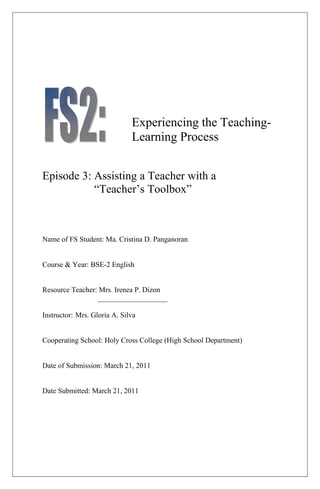1. The document summarizes a student's observation of an English class taught by Mrs. Dizon. The objectives of the lesson were to prepare students for finals and master parts of speech and figures of speech.