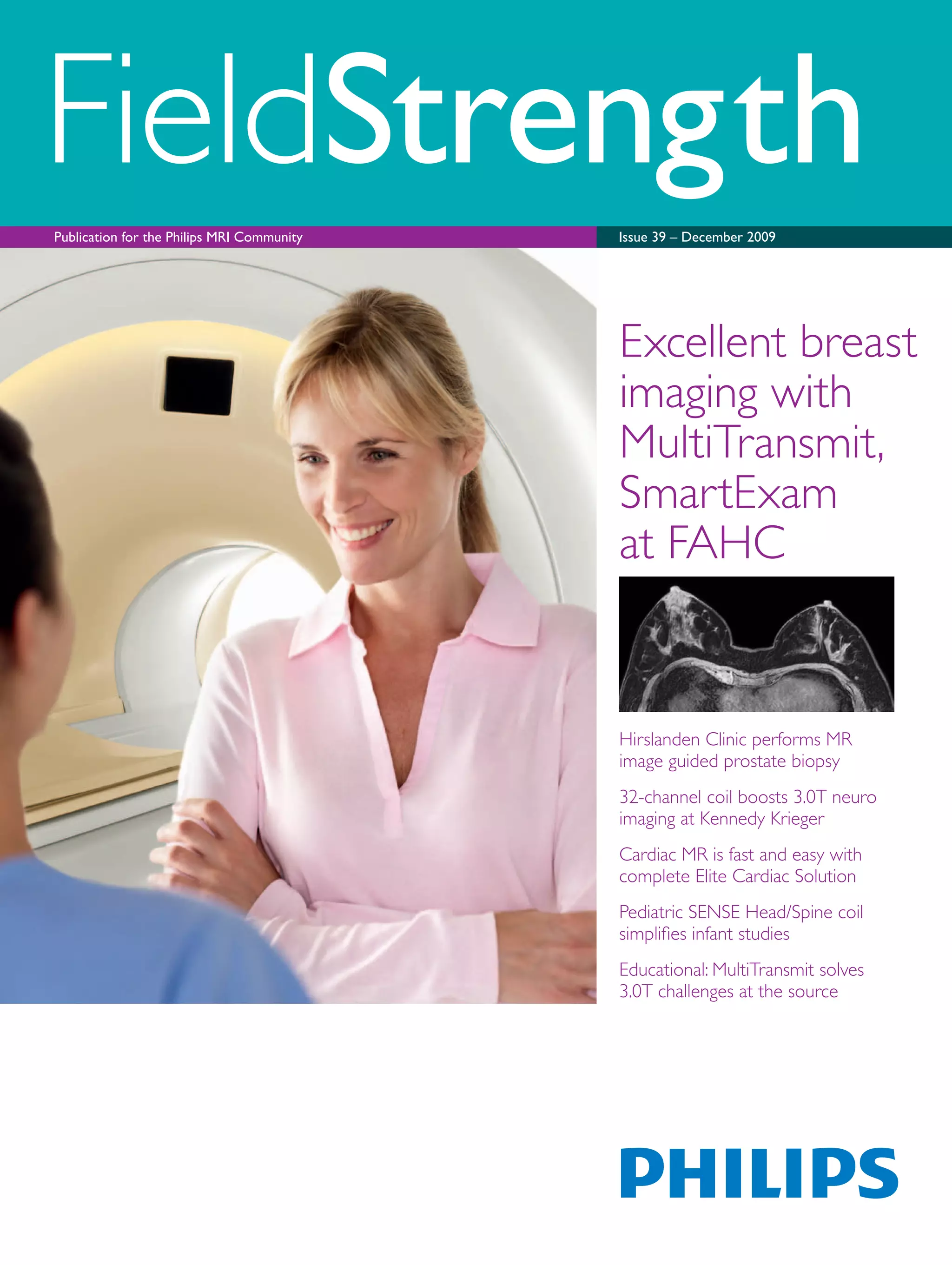 The document discusses the use of MultiTransmit and SmartExam Breast technologies on a Philips Achieva 3.0T TX scanner at Fletcher Allen Health Care for breast imaging. When Fletcher Allen originally upgraded to a 3.0T scanner, image quality was inconsistent due to field inhomogeneities in different patients. SmartExam Breast simplifies workflow by automatically planning scans and optimizing shimming, resulting in excellent and reproducible fat saturation. MultiTransmit further improves image uniformity in non-fat saturated images. Both technologies help address challenges of 3.0T breast imaging and improve workflow and image quality.