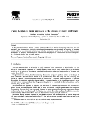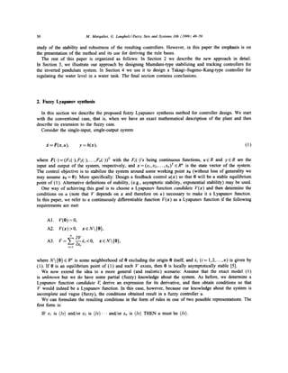 This document describes a new method for designing fuzzy controllers based on extending the classical Lyapunov synthesis method. The key points are: