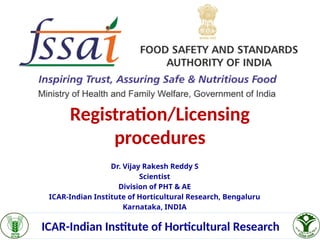 The document outlines the Food Safety and Standards Act, 2006, which aims to regulate food safety in India through the establishment of the FSSAI. It describes the types of approvals required for food businesses, including registration for petty manufacturers and licensing for larger operations, along with the necessary documentation and fees associated with each. Additionally, it notes the requirement for displaying FSSAI certification at food premises and clarifies that a company may hold multiple licenses for different products processed in separate areas.