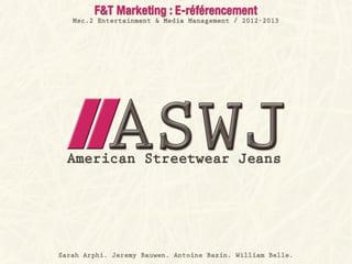 The document outlines the branding and online marketing strategies of the ASWJ fashion brand, founded in 1999 by four students to provide stylish clothing for young active individuals. Key elements include brand identity, marketing mix, and a strategic focus on social media platforms like Facebook and Twitter to foster community engagement. Results indicate a growing presence among consumers aged 18-34, with active efforts to maintain brand awareness and customer loyalty through varied content and interaction.