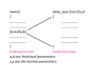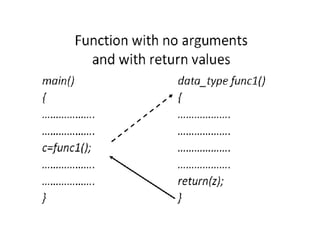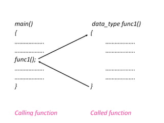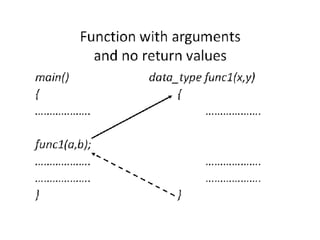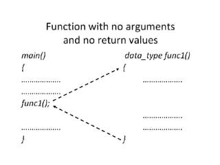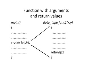 Functions allow programmers to organize code into reusable blocks. There are two types of functions: pre-defined/library functions which are provided for use and user-defined functions which are created by the programmer. User-defined functions help reduce code length and make debugging easier. Functions can receive input parameters, return values, or do both. Arrays allow storing and accessing related data through indexes. One-dimensional arrays store data in a single list while multi-dimensional arrays can represent tables of data through multiple indexes.