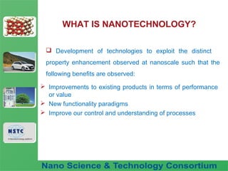 The document discusses a fuel nano-additive technology that uses cerium oxide nanoparticles as a fuel borne catalyst. It provides background on nanotechnology and describes how cerium oxide improves fuel combustion efficiency and reduces emissions when mixed into fuel at the nanoscale. Laboratory tests conducted on a diesel engine in Vietnam found that the nano-additive reduced fuel consumption and particulate emissions while increasing combustion pressure over 56 hours of operation with no adverse effects.