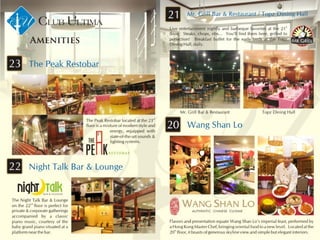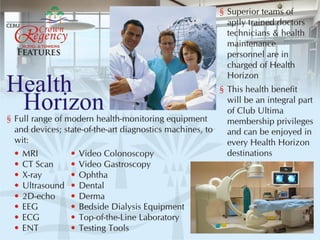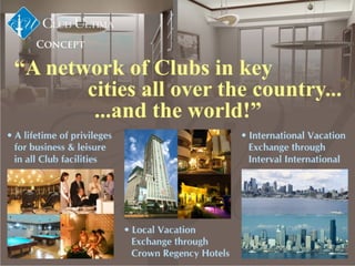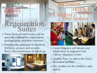 The document outlines various pricing structures for accommodation and membership options, detailing costs for individuals and corporate clients. It includes specific payment schemes for unit reservations and financing options. Client-specific financial breakdowns for unit purchases are provided, along with contact information for inquiries.