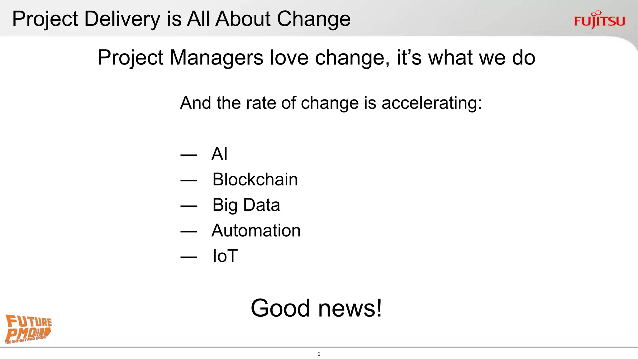 The document discusses the importance of building a project management community, particularly in the context of rapidly changing technological and organizational needs. It emphasizes empowering team members to share knowledge and experiences, fostering a culture of knowledge transfer to drive improvements in project management. Fujitsu's community vision highlights the significance of collaboration, continuous improvement, and utilizing combined organizational knowledge to enhance skills and deliver projects more effectively.