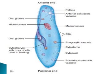3. Important protozoan groups include the SAR supergroup, apicomplexans, ciliates, and dinoflagellates. Many protozoa are free-living but some are parasitic and can cause serious diseases in humans and other