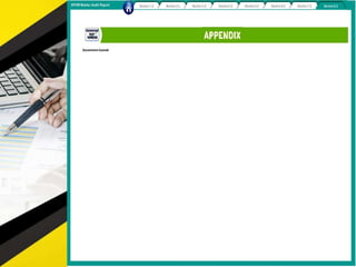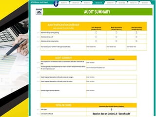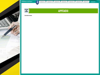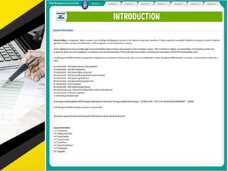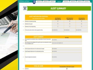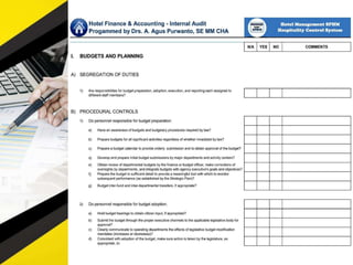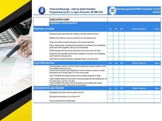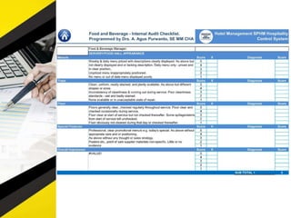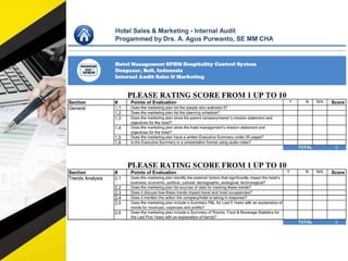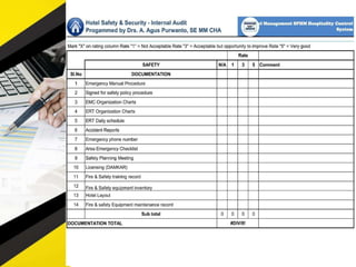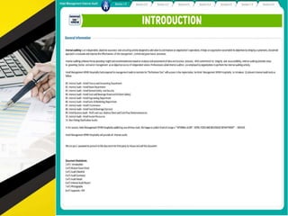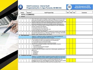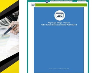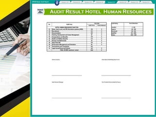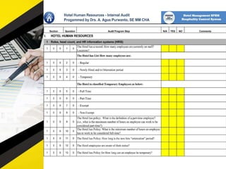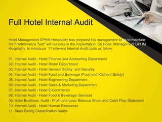 The document outlines 11 internal audit tools that a hotel management company named SPHM Hospitality has prepared to maintain performance. The 11 internal audits cover the hotel's finance and accounting, rooms, general safety and security, food and beverage kitchen, engineering, sales and marketing, e-commerce, food and beverage service, business performance, human resources, and star rating classification.
