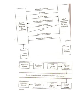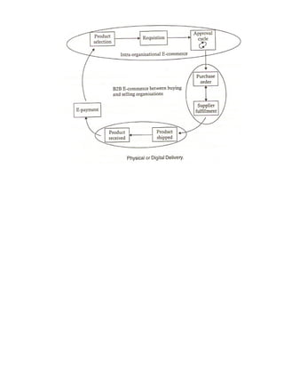 This document provides an introduction to e-business and e-commerce. It defines e-business as conducting business electronically, including e-commerce as well as other applications like re-engineering processes, e-commerce systems, and enterprise collaboration. E-commerce is defined as a subset of e-business focused on online buying and selling. The document then discusses the history and development of e-business from the 1970s onward, outlines different e-business models and applications, and provides details on concepts like electronic data interchange and business-to-business e-commerce.