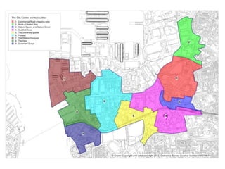 The document presents a draft masterplan for redeveloping a city's seafront area. It identifies 21 development opportunity sites and includes artist impressions of proposed improvements such as a new arts quarter, amphitheater, waterside deck, cafes, and relocating the bandstand. The masterplan aims to revitalize the seafront from Long Curtain Moat to Clarence Pier, including areas like Old Portsmouth, Southsea Common, and South Parade.