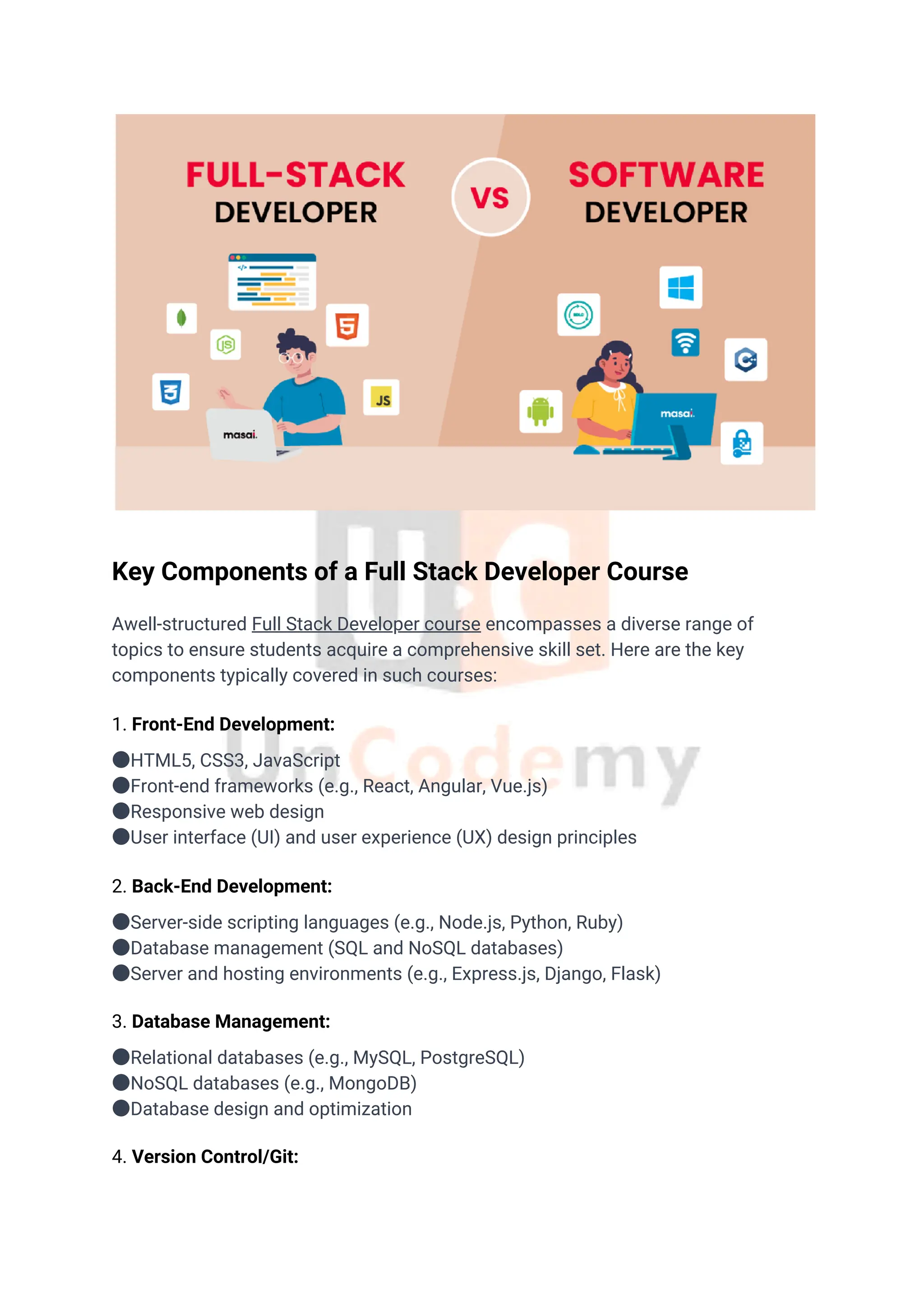 The document discusses the significance of full stack developers in the software development ecosystem, highlighting their proficiency in both front-end and back-end technologies. It outlines key components and benefits of full stack developer courses, emphasizing their versatility, job opportunities, and cost-effectiveness for startups. Additionally, it provides insights into salary trends and factors influencing full stack developer salaries in India.