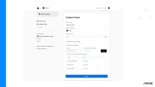 This document discusses building a full stack graph application with Neo4j AuraDB, GitHub Actions, GraphQL, Next.js, and Vercel. It covers how to get data into Neo4j, build a GraphQL API with Neo4j and the GraphQL library, work with graphs on the frontend using GraphQL and React, and deploy the full application to Vercel. Code examples and resources are provided for each part of the process.