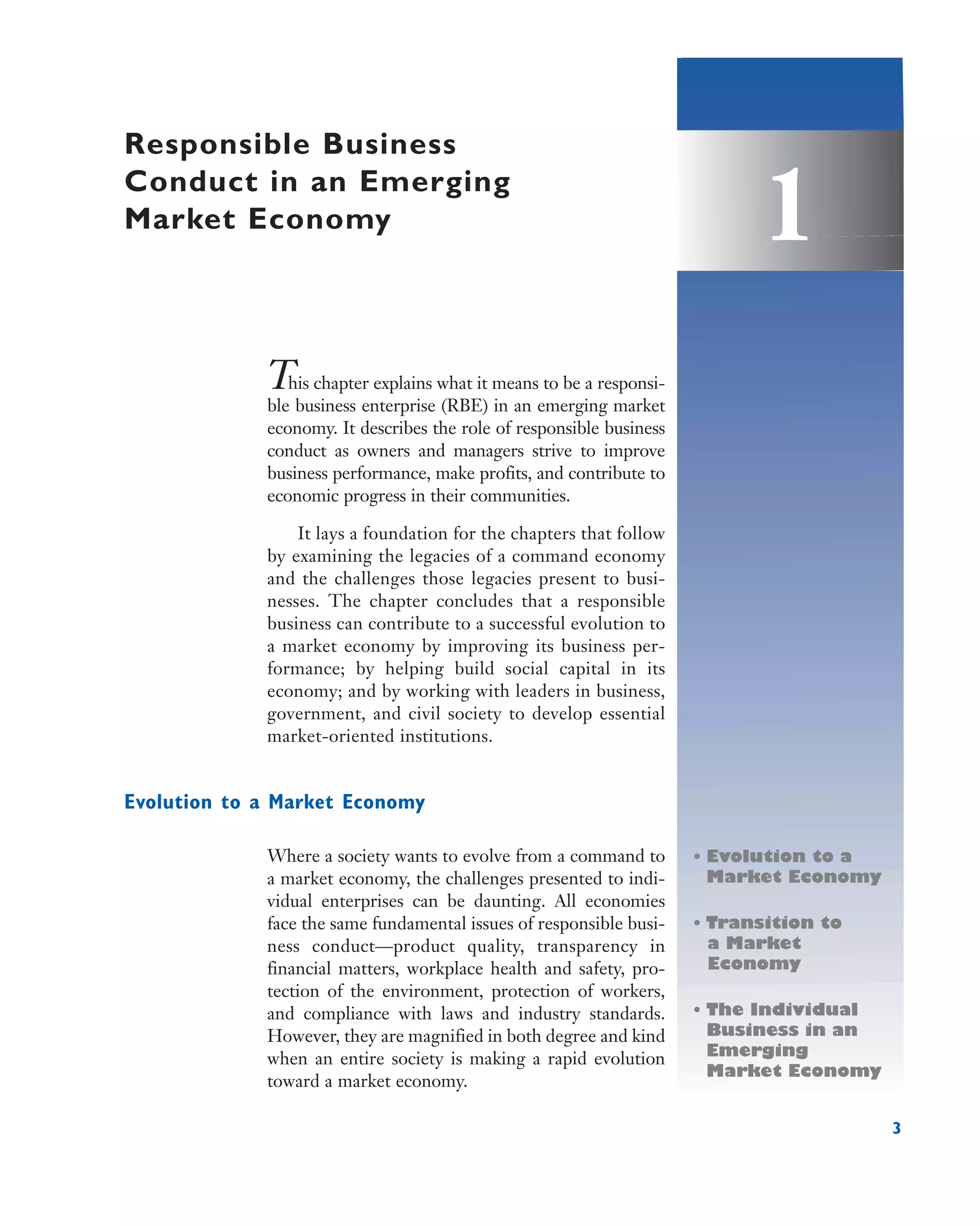2) It explains that while all economies face challenges of responsible business conduct, the challenges are magnified for societies rapidly transitioning to a market economy from a command economy.