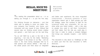 This document provides an overview of the FullSIX Group, a marketing communications group with agencies across Europe, the US, China, Russia, and Brazil. It discusses the group's focus on relevance and synchronized marketing. It also highlights some of the group's clients, capabilities, and past projects completed by the Berlin office, including social media projects for Hotel Barceló Hamburg and David Beckham fragrances. The document promotes the group's expertise and experience in various marketing areas.