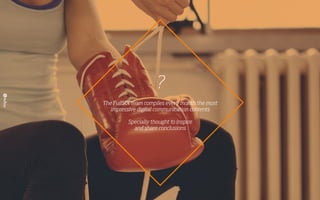 The document outlines innovative digital communication strategies and insights developed by the Fullsix team, focusing on how brands can connect with consumers through technological advancements and targeted content. It highlights the changing behavior of users, the impact of social media as a source of information, and examples of brand activation and engagement. Additionally, it emphasizes the importance of aligning brand values with consumer interests and utilizing creative approaches for effective digital marketing.
