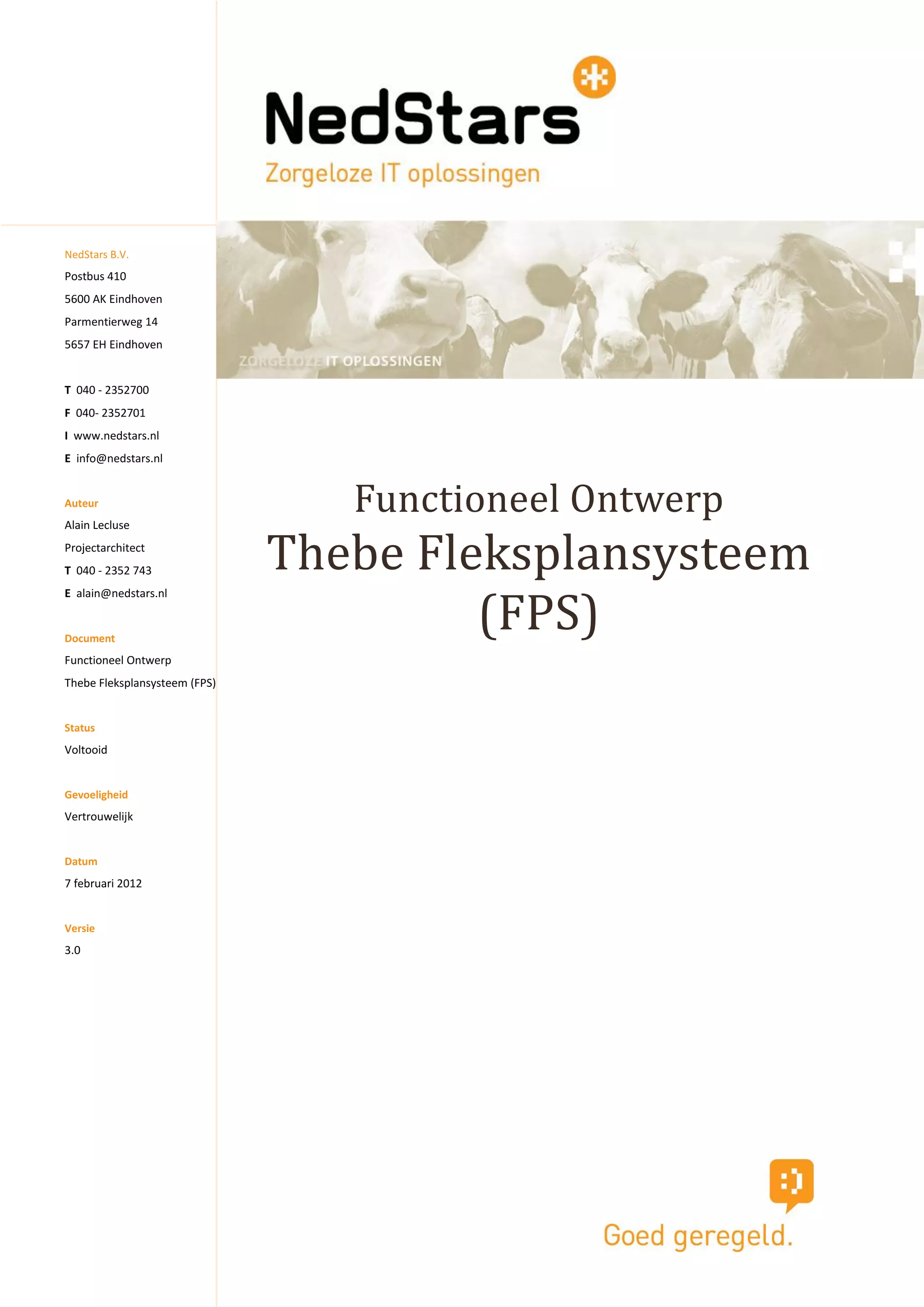 3.0 In dit Functioneel ontwerp wordt het nieuwe digitale FPS besproken. Het systeem is initieel voor