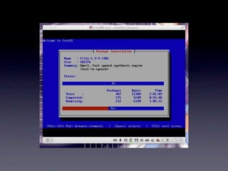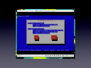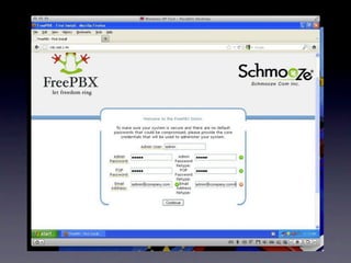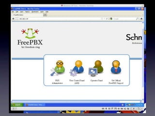 This document provides an introduction to setting up voice over IP (VoIP) telephony with Linux. It begins with an overview of VoIP terminology. It then discusses the two main Linux VoIP software solutions, Asterisk and FreePBX, and recommends FreePBX. The document outlines the hardware needed, including softphones for computers and smartphones, as well as IP phones, analog telephone adapters, and telephony interface boards. It also discusses options when Ethernet is not available, such as Ethernet bridges, WiFi IP phones, and custom wireless solutions using existing cordless phones.