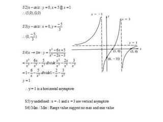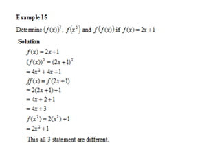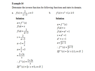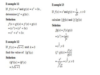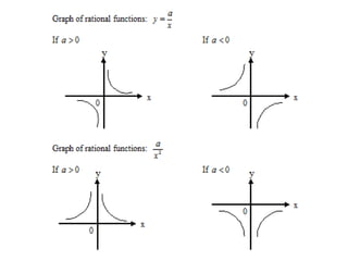 This document discusses functions and graphs. It begins by introducing the concept of a function and how functions are used to model real-world phenomena by relating one quantity to another. Examples are given such as relating distance fallen to time for a falling object. The document then discusses different types of functions like quadratic, polynomial, and rational functions. It provides guidelines for graphing these different function types by identifying intercepts, end behavior, maxima/minima, and asymptotes. The document also covers combining functions through composition and finding inverse functions. It concludes by discussing using functions to model real-world scenarios like relating crop yield to rainfall or fish length to age.
