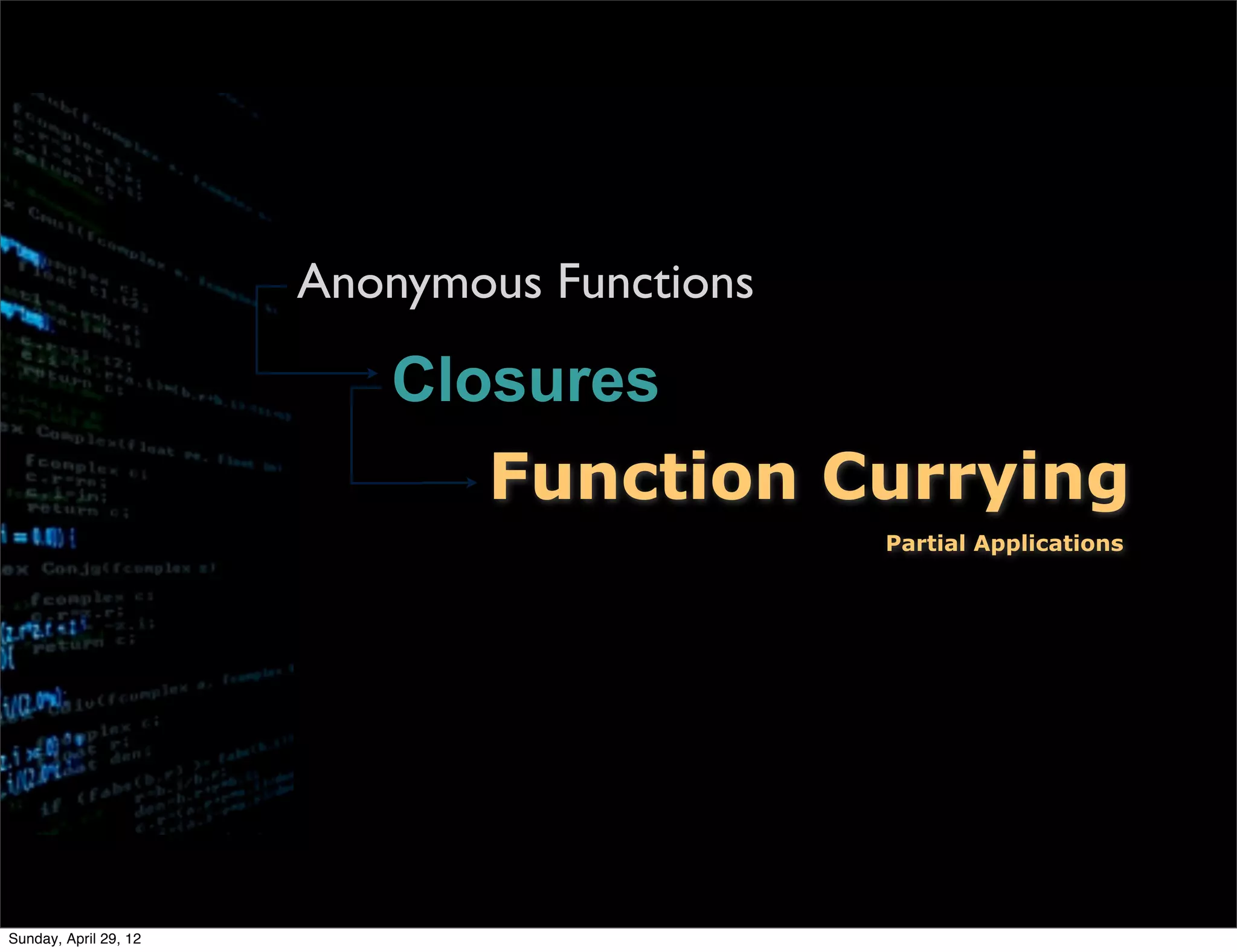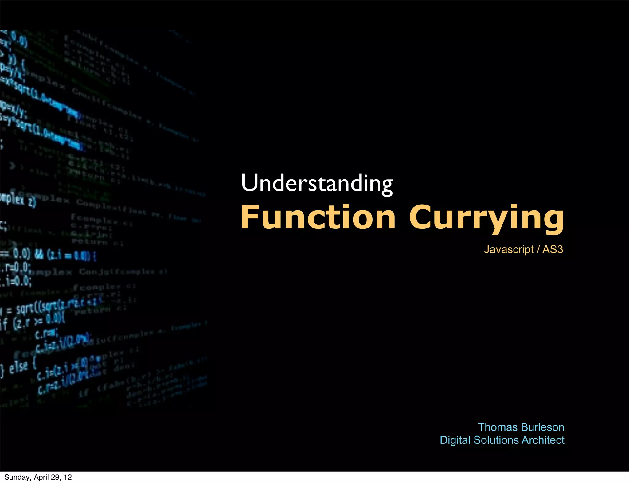 This document discusses function currying as a way to refactor code to make it more concise and easier to maintain. It explains that function currying combines a function with variables to create a new function, with the variables captured by closure scope. An example is given of refactoring asynchronous REST service code using two levels of function currying to make the code more DRY and less verbose.