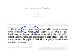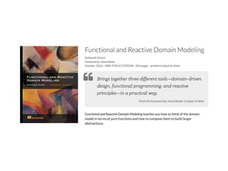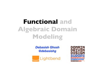 The document discusses functional and algebraic domain modeling. It defines an algebraic structure as a set with operations that satisfy axioms. Domain modeling involves identifying types, functions between types, and rules that govern the domain. A bounded context models a consistent vocabulary and behaviors as functions on domain objects. The algebra of a type refers to the number of possible inhabitants based on its structure. Product and sum types are discussed as ways to model heterogeneous data. Algebras of types and functions can be composed to build larger behaviors by following type relationships. An approach to domain modeling uses algebraic composition of identified behaviors to implement and modularize domain models.