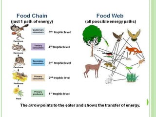 The document discusses the functional components of an ecosystem, highlighting the sun as the primary energy source and examining diversity, evolution, and ecological succession. It outlines concepts like climax and primary succession, as well as secondary succession in response to disturbances. Additionally, it addresses community interactions, particularly competition, detailing intraspecific and interspecific competition and the Gause competitive exclusion principle.