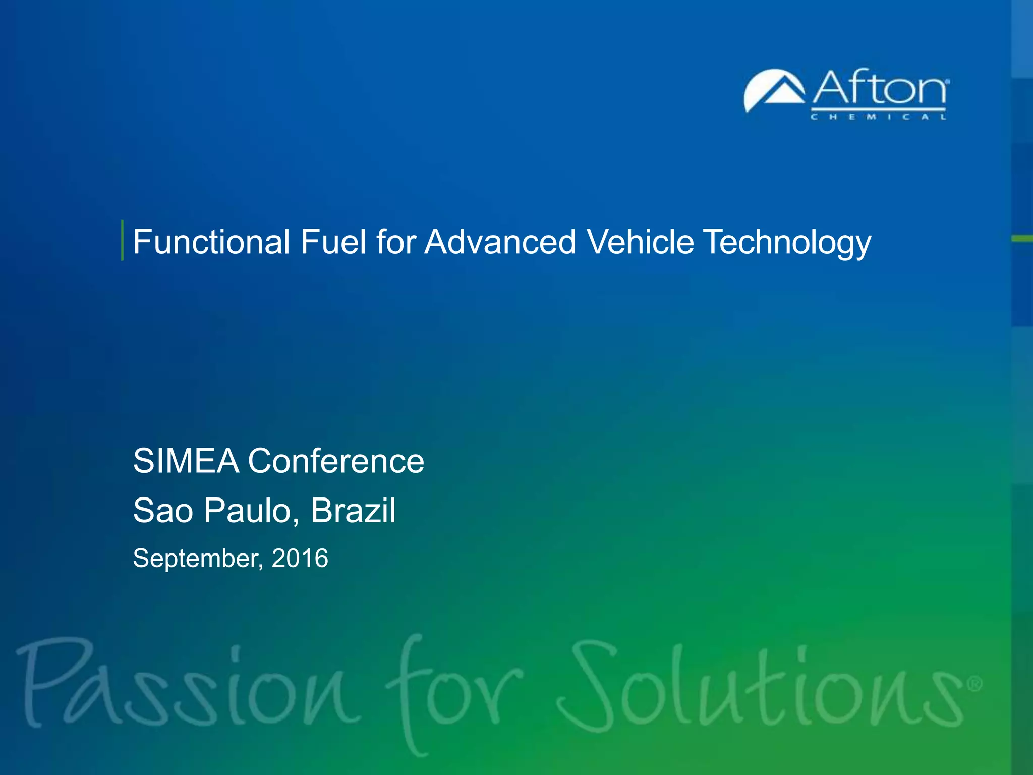 The document discusses key trends in the global fuel market, including evolving emissions standards, advances in vehicle hardware technology like direct injection and turbocharging, and their impact on fuel and additive requirements. Stricter emissions regulations are driving new engine designs that introduce challenges for fuel performance. Additives can help maintain engine efficiency and reduce emissions by addressing issues like deposits and low-speed pre-ignition. Future engine technologies are expected to further stress fuel and additive performance.