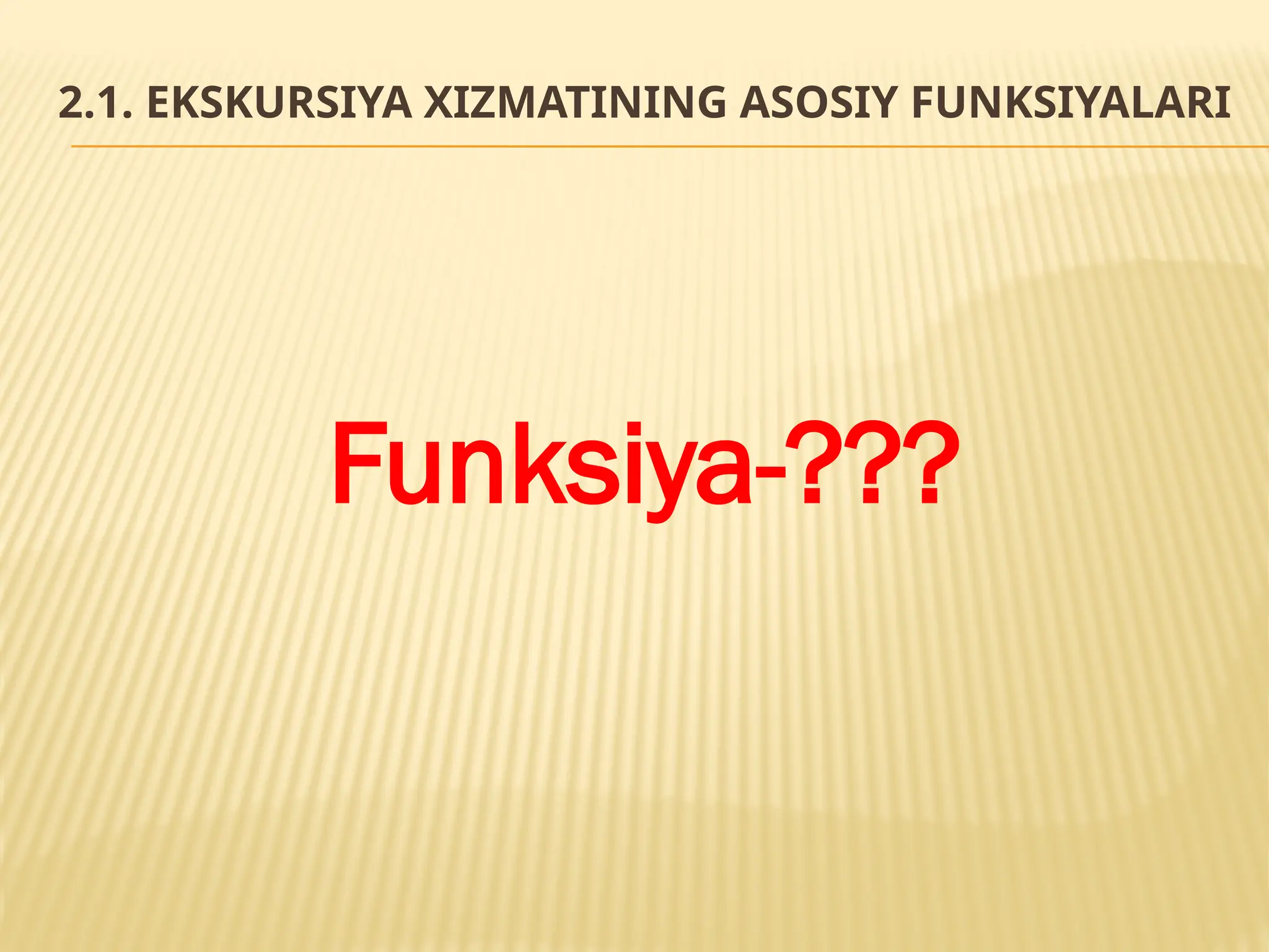 farqlanadi. Ekskursiya xizmatida axborotning ko‘pgina