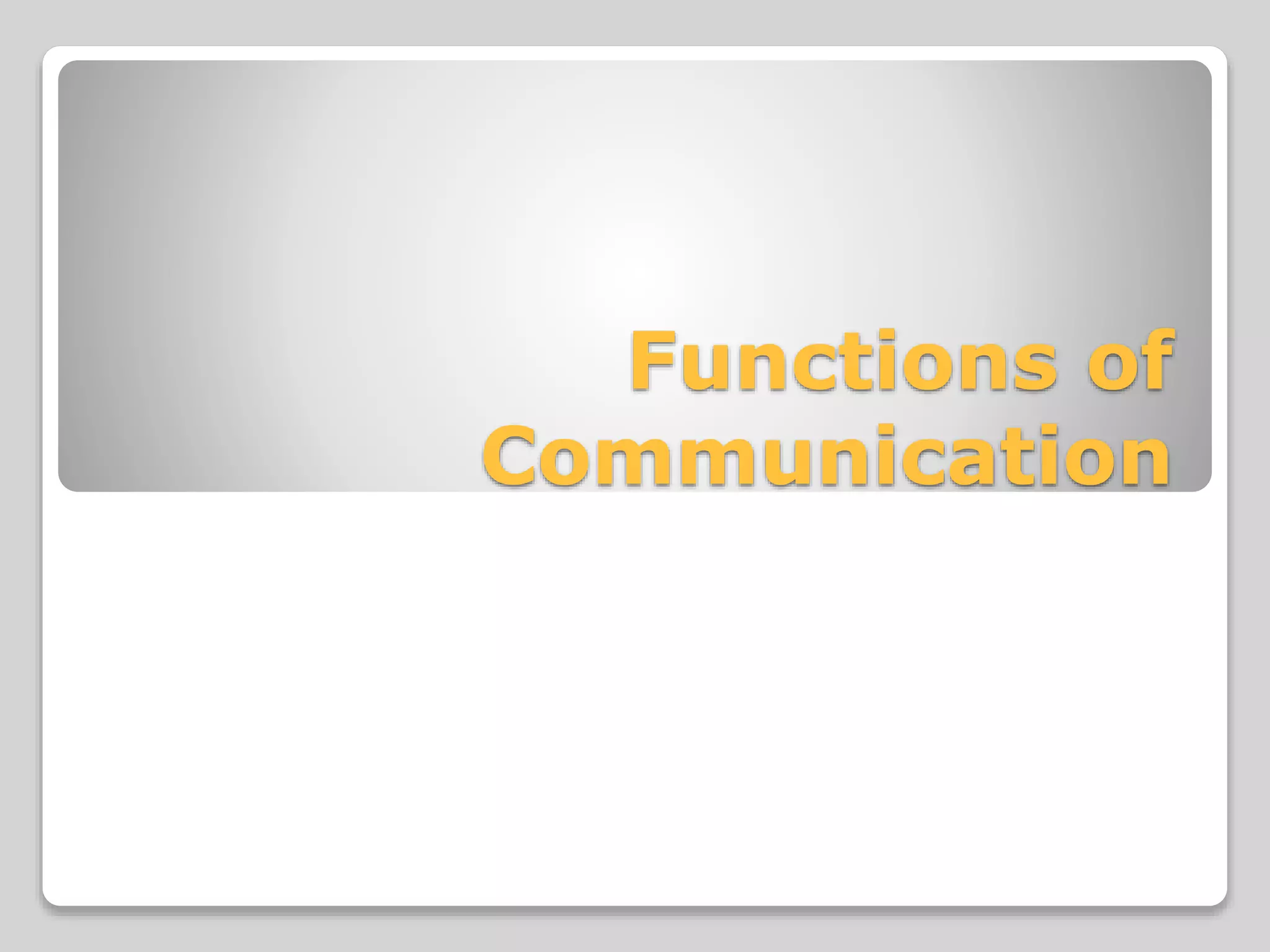 The document discusses the different functions of communication: