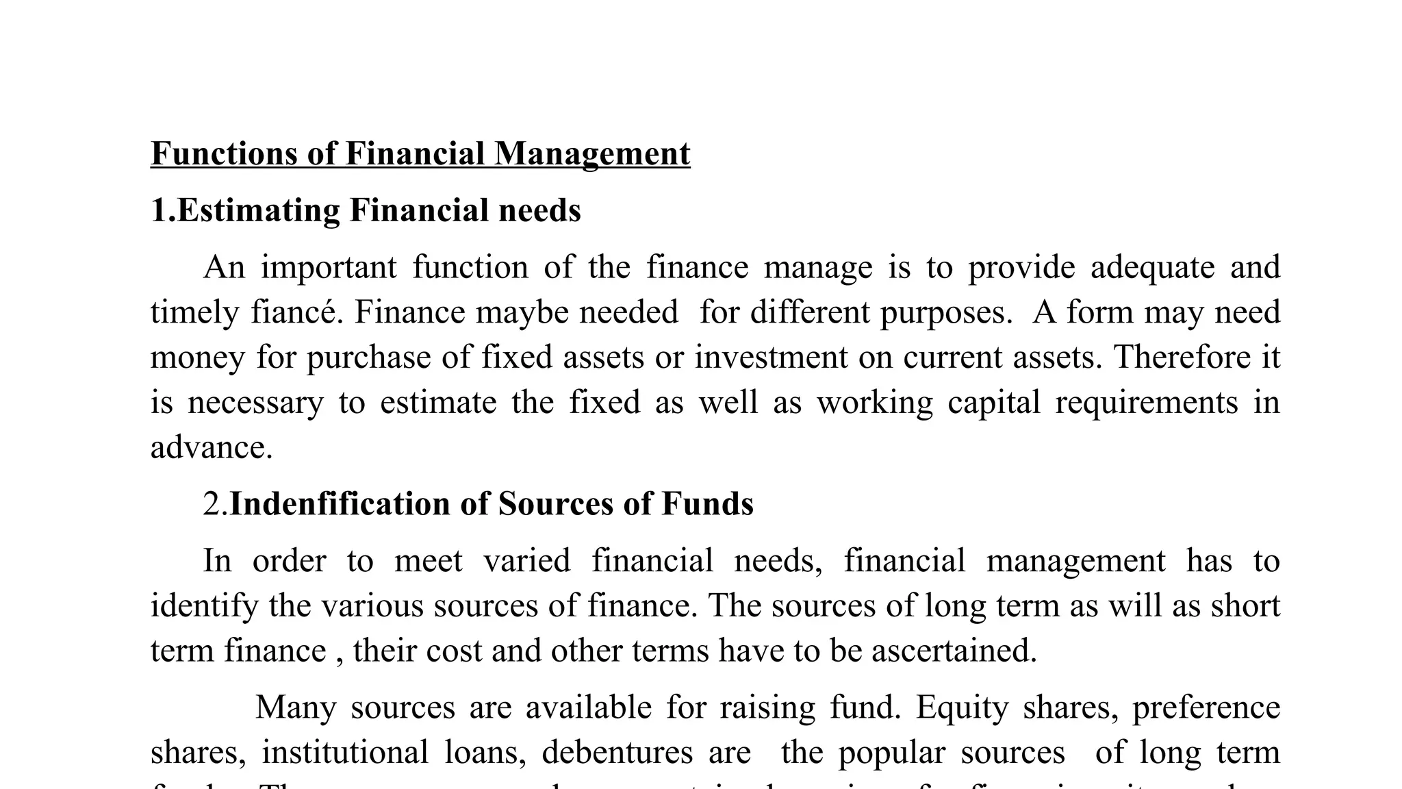 The document outlines the key functions of financial management, emphasizing the role of finance managers in estimating financial needs, identifying sources of funds, and developing capital structures. It covers essential aspects such as capital budgeting, working capital management, dividend policy, and financial analysis among others, detailing the importance of effective financial planning and decision-making within organizations. Overall, it highlights the complexity of financial activities and the crucial decisions a finance manager must make to ensure optimal utilization of resources.