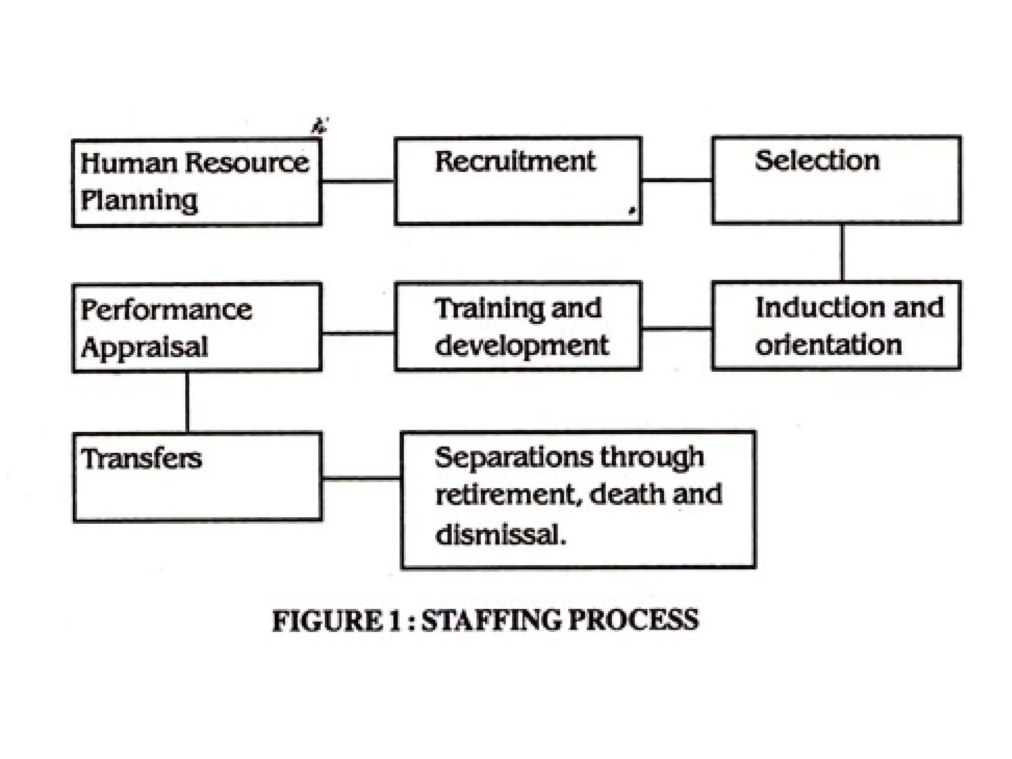 The document outlines the functions of management with a focus on staffing, including human resource planning, recruitment, selection, placement, compensation, and performance appraisal. It emphasizes the importance of finding and developing suitable employees while ensuring equal employment opportunities and offering a range of benefits. Additionally, it addresses employee movements and the various factors influencing organizational dynamics.