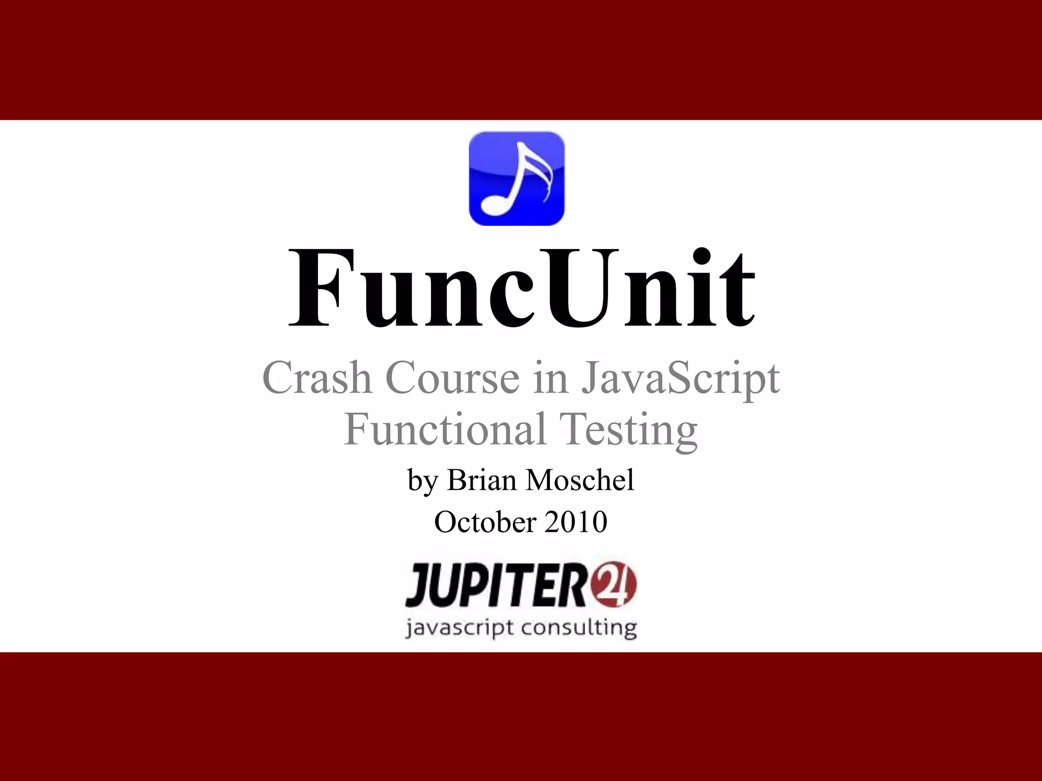 This document provides an introduction to FuncUnit, a JavaScript functional testing framework. It discusses barriers to testing JavaScript applications, how FuncUnit addresses these barriers through its easy to use API and ability to simulate user interactions across browsers. It also provides examples of using FuncUnit to test applications written with jQuery and without page reloads.