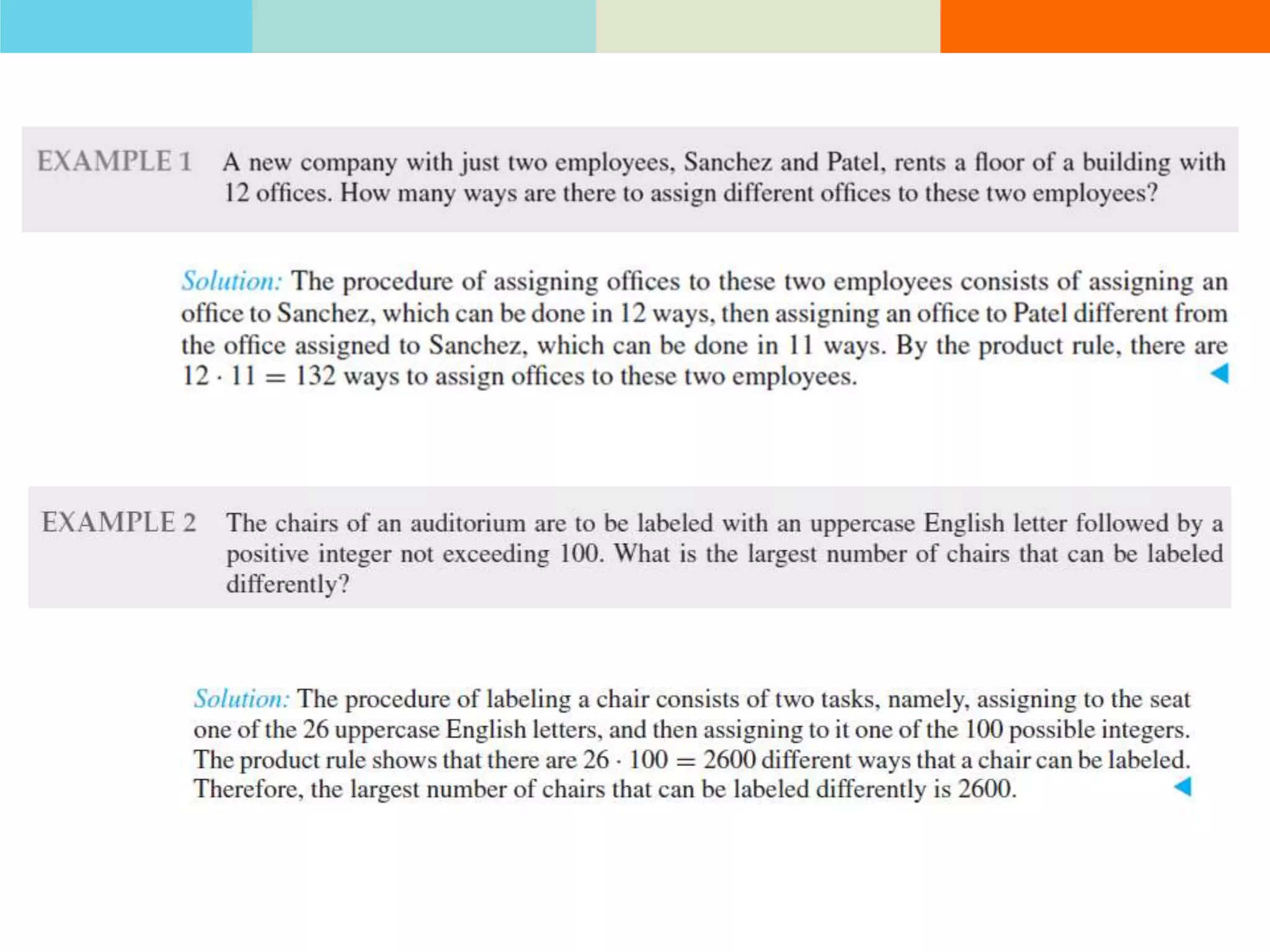 The product rule states that if a procedure consists of sequential tasks that can be completed in varying numbers of ways, the total number of ways to complete the procedure is the product of the number of ways for each individual task. For example, if a class has 60 students and letter grades can be A, B, C, D, or F, with at least 12 students getting each grade, then the number of ways to assign grades to all students is the product of the number of students that can get each grade.