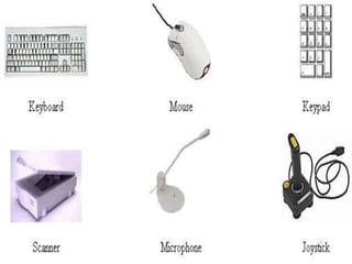 The document discusses the functional components of a computer. It explains that a computer accepts input, stores data, processes data, provides output, and controls operations. It then describes each of these functions in more detail. Specifically, it notes that input involves entering data, storage saves data permanently, processing performs calculations on stored data, and output produces results. Control coordinates all internal operations. The document further breaks down the processing function among the arithmetic logical unit, control unit, and central processing unit. The arithmetic logical unit performs calculations, the control unit coordinates operations, and the central processing unit directs different parts of the computer.