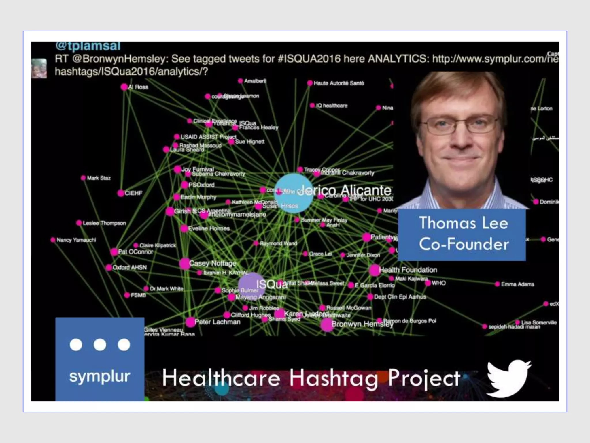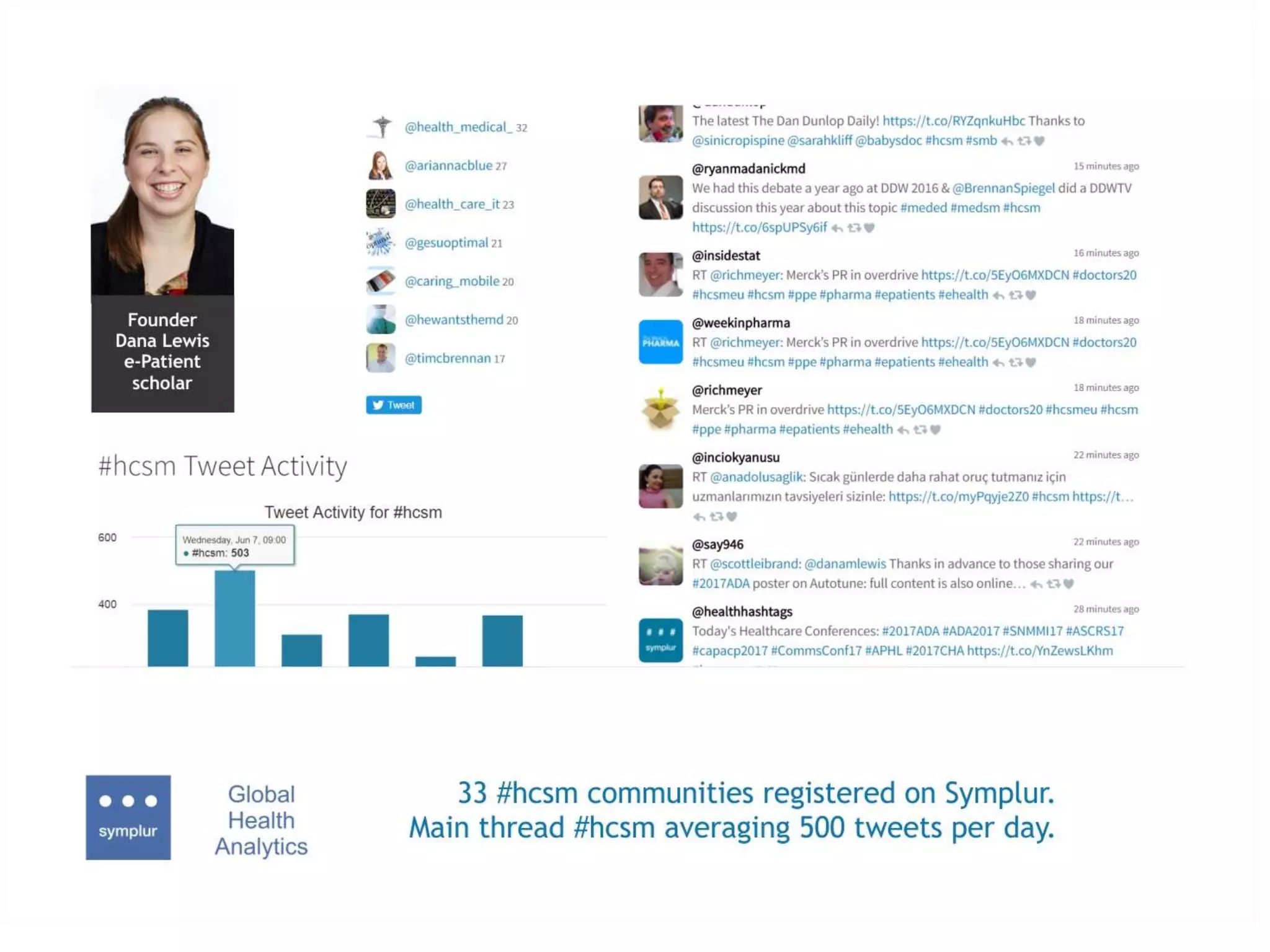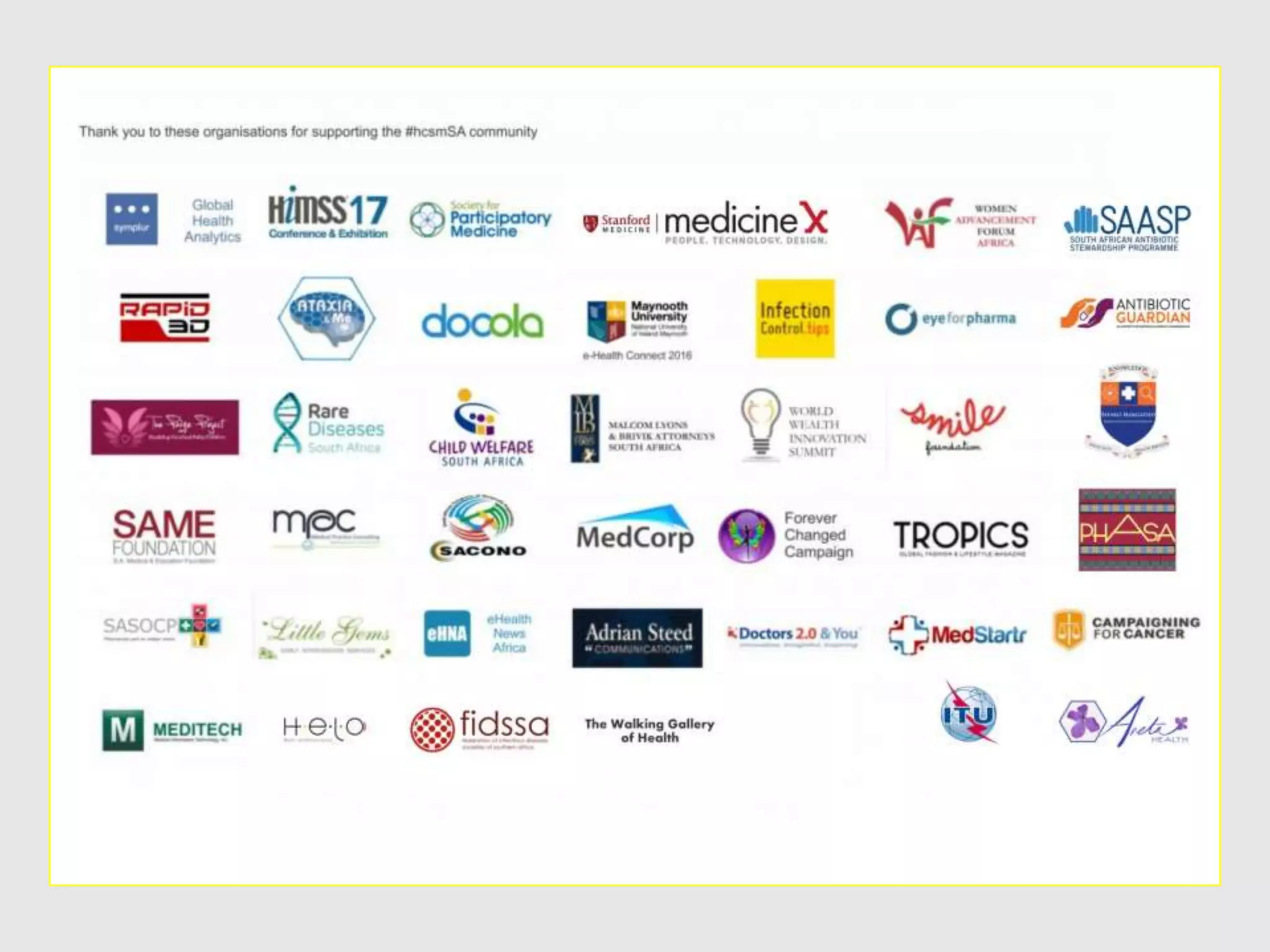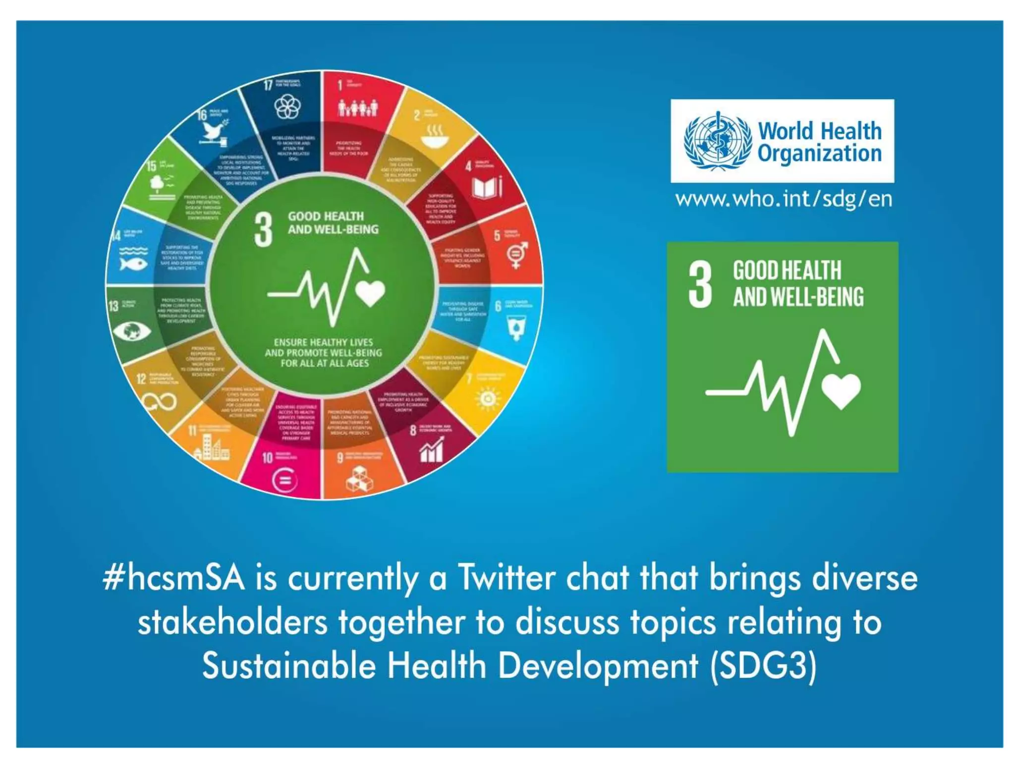 The document presents an index of healthcare social media hashtags contributed by various health stakeholders worldwide. It prompts the question of what constitutes sustainable health. Additionally, it includes imagery related to sustainable development goals and features the Stanford Children's Health.