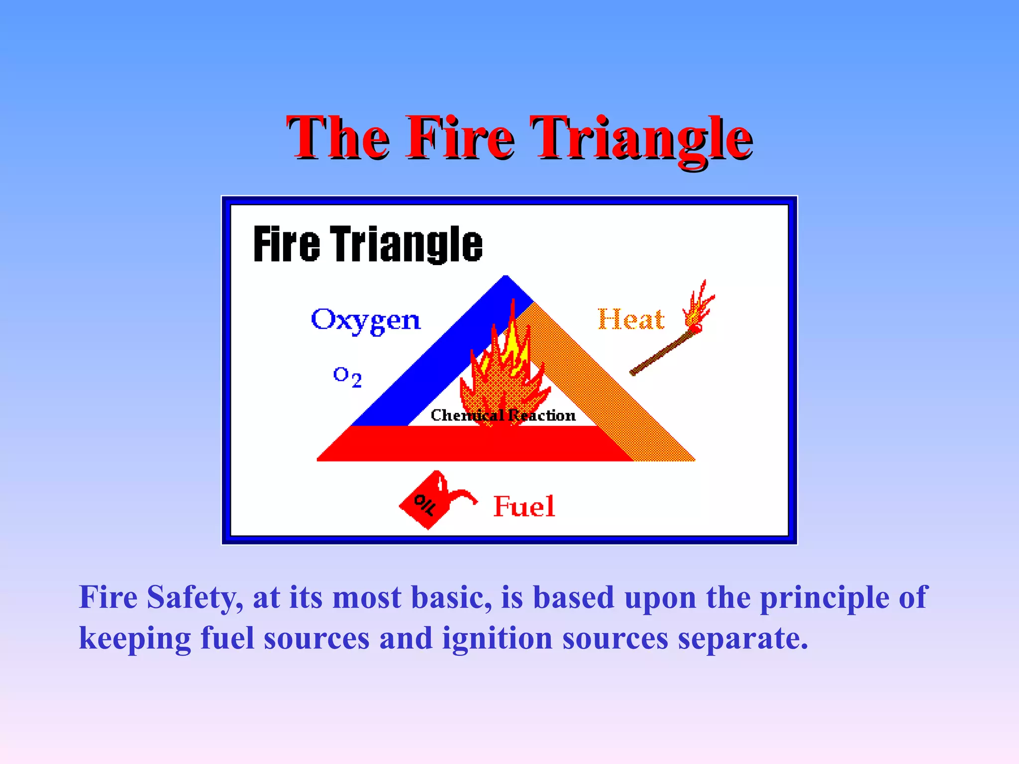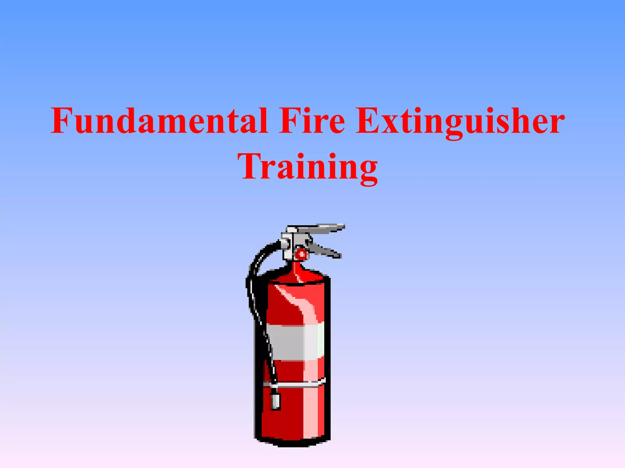 The document provides information on fundamental fire extinguisher training and the fire triangle. It discusses the three elements needed for a fire - oxygen, heat, and fuel. It also covers fuel classifications, types of fire extinguishers including water, carbon dioxide, and dry chemical, how to use an extinguisher using the PASS method, and rules for fighting fires safely.