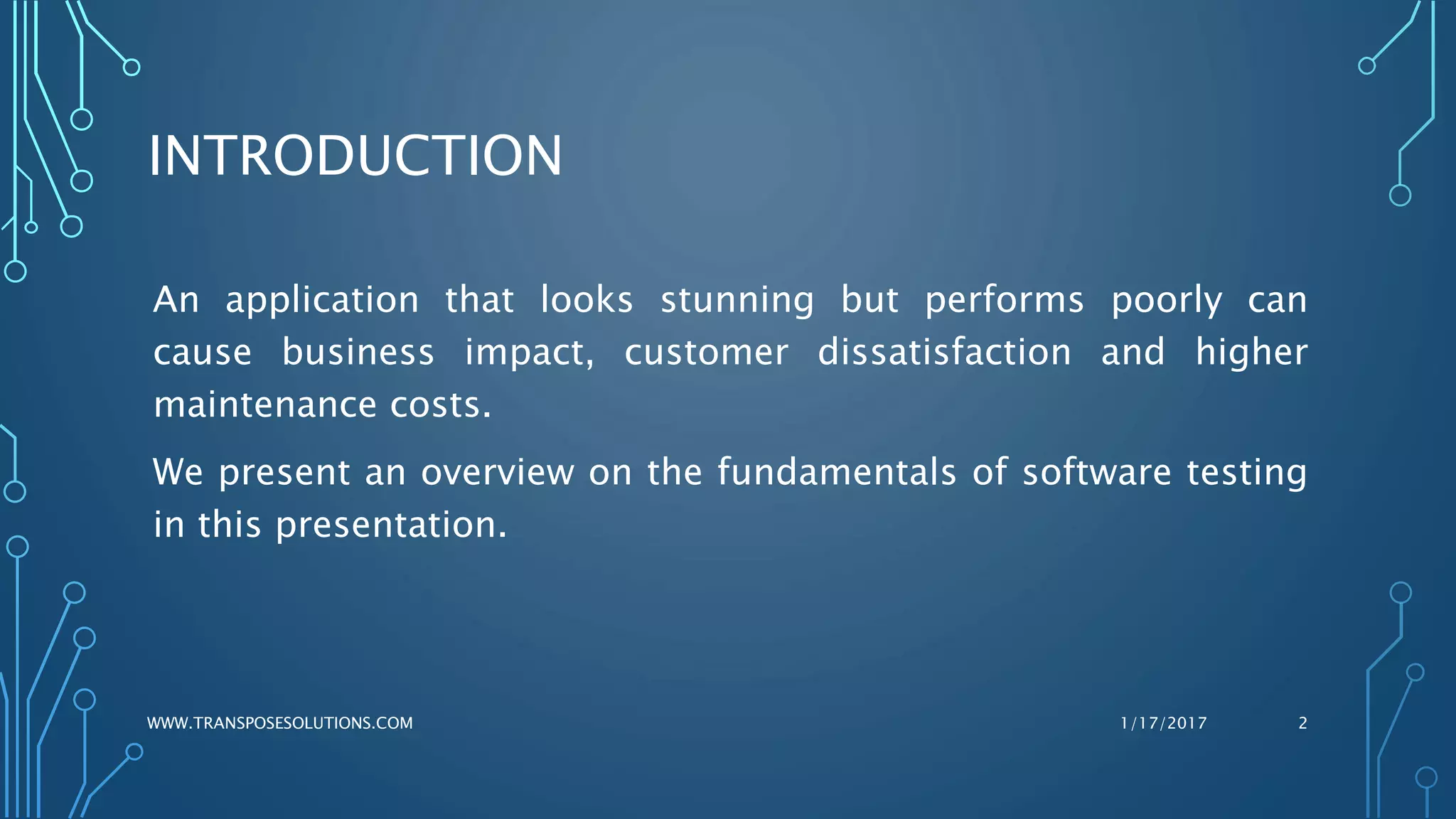 This document provides an overview of the fundamentals of software testing, emphasizing the importance of rigorous testing to reduce risks and improve software quality. It outlines the testing process starting from requirement gathering to test execution and reporting, highlighting various testing methods and objectives. The document also stresses the need for certified testers and adherence to ethical standards in the testing profession.