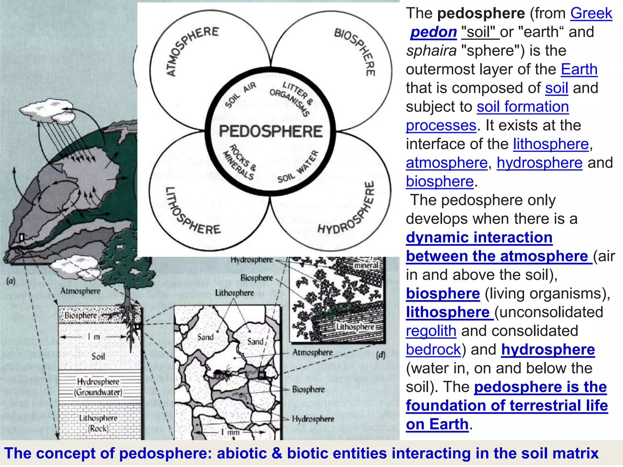 The document discusses fundamentals of soil science. It defines key terms like pedosphere, pedon, and polypedon. The pedosphere is the outermost layer of the Earth composed of soil and subject to soil formation processes. A pedon is the smallest volume of soil recognized as an individual soil. A polypedon is a contiguous group of similar pedons that together define a soil individual. The document also summarizes the six key functions of soil and outlines the two branches of soil science - pedology and edaphology.