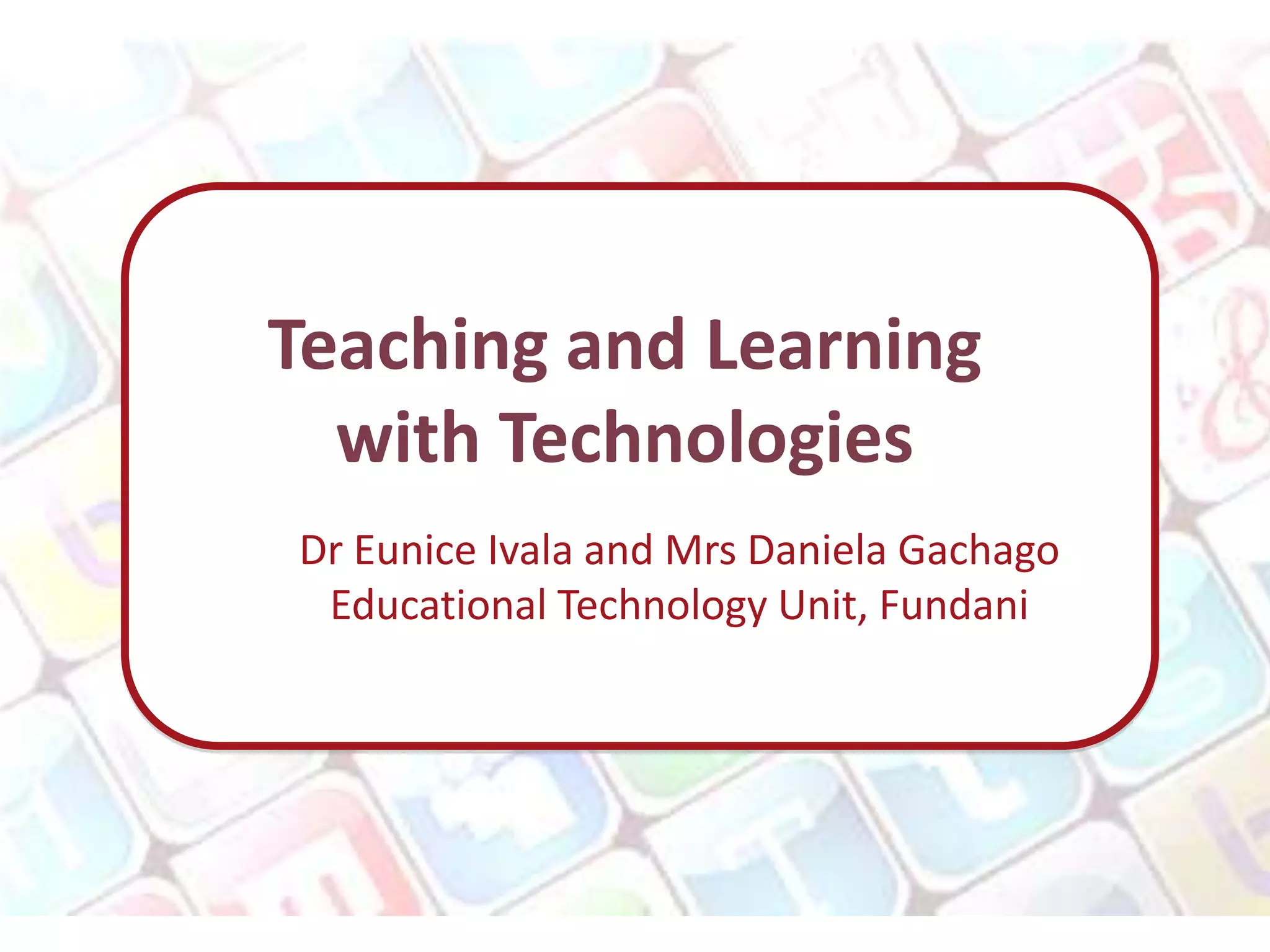 1) The Educational Technology Unit at CPUT aims to promote the integration of technologies in teaching and learning to create transformative and meaningful learning experiences for students.