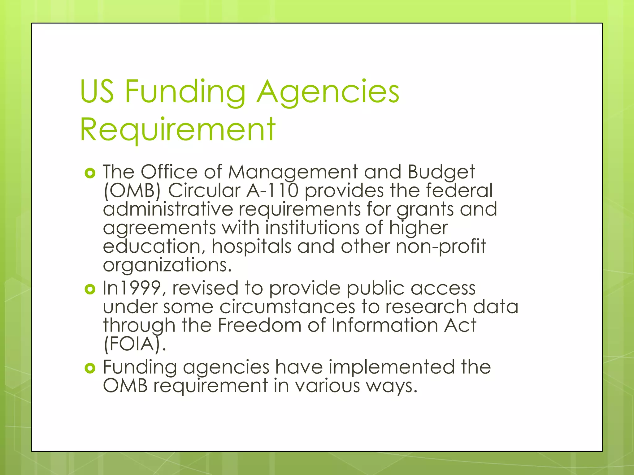 This document discusses funder requirements for data management and sharing. It notes that major funders like the National Science Foundation (NSF) and National Institutes of Health (NIH) require applicants to submit a data management plan. These plans describe how research data will be organized, preserved, and shared. The document provides details on what funders expect to see in a data management plan, including a description of the data, metadata standards, data access and sharing policies, and plans for long-term data preservation. It also lists other funders that require applicants to have a data management or sharing plan.