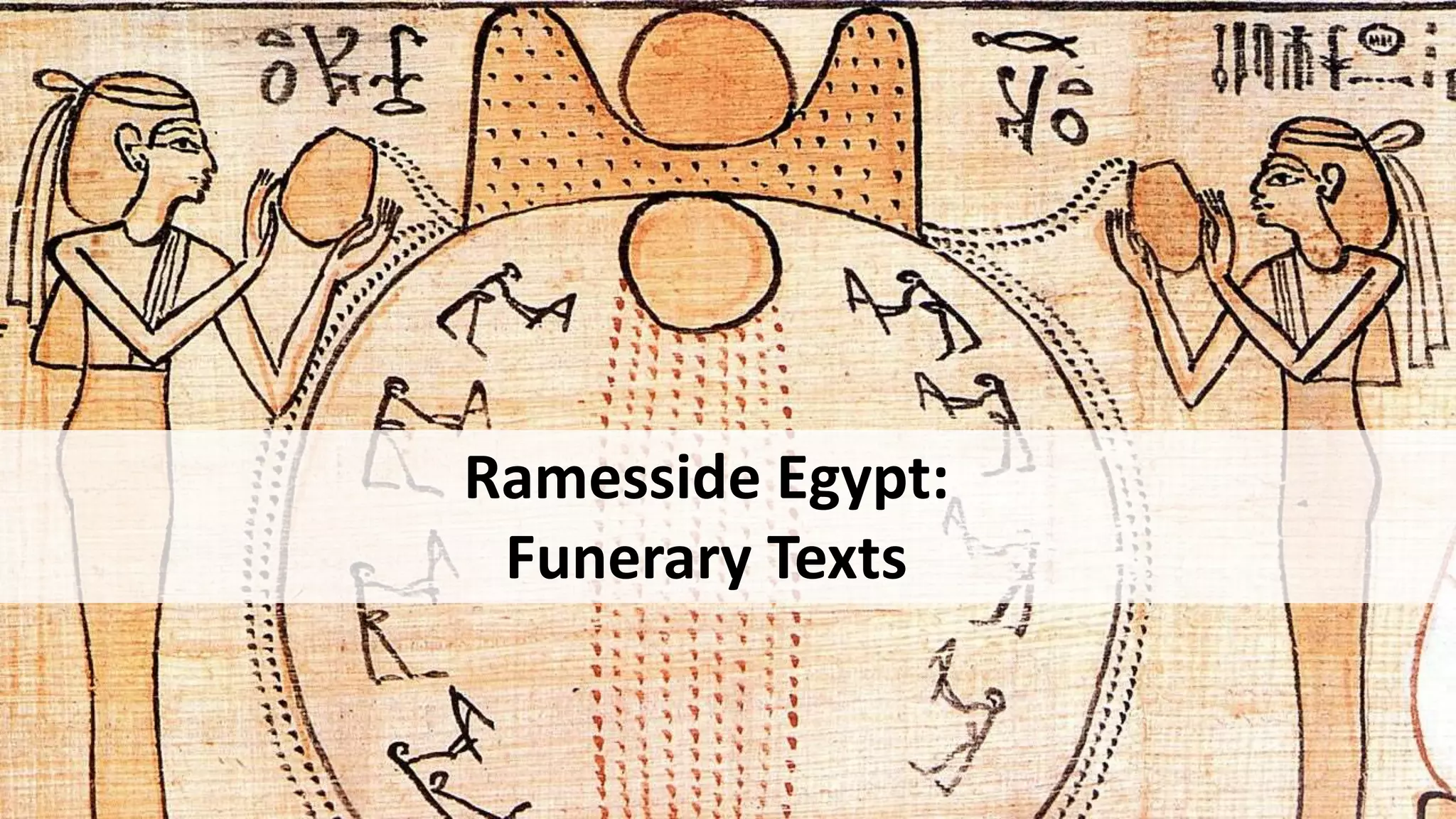 This document provides information on funerary texts from the Ramesside Period in Egypt. Key points include: