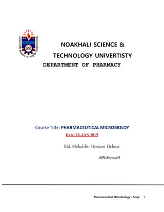 This document provides information about fungi. It begins by defining fungi and their key characteristics, such as being eukaryotic and non-photosynthetic. It then covers the different types of fungi including zygomycetes, ascomycetes, and basidiomycetes. The document discusses the different ways fungi reproduce, both sexually and asexually. It also lists some common fungal diseases caused by organisms such as Aspergillus, Candida, and Cryptococcus.