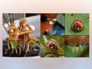 Fungi are eukaryotic, nonphotosynthetic organisms that grow in warm, moist environments. They have filamentous hyphae made of chitin and reproduce both sexually through the formation of zygotes and asexually through spores. Fungi play important ecological roles as decomposers, parasites, and symbionts through mycorrhizal relationships with plants. They are also economically significant in industries like food production, medicine, and are important plant pathogens.