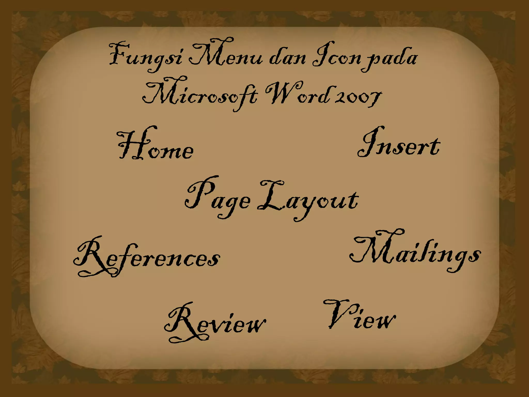 Dokumen ini menjelaskan berbagai fungsi menu dan ikon pada Microsoft Word 2007, termasuk alat untuk memformat teks, menyisipkan elemen, serta mengelola dokumen seperti mail merge dan revisi. Setiap ikon memiliki fungsi spesifik, mulai dari pengaturan font hingga menyisipkan tabel, gambar, dan catatan. Terdapat juga penjelasan tentang bagaimana menggunakan alat untuk kolaborasi dan pengaturan dokumen yang lebih efisien.