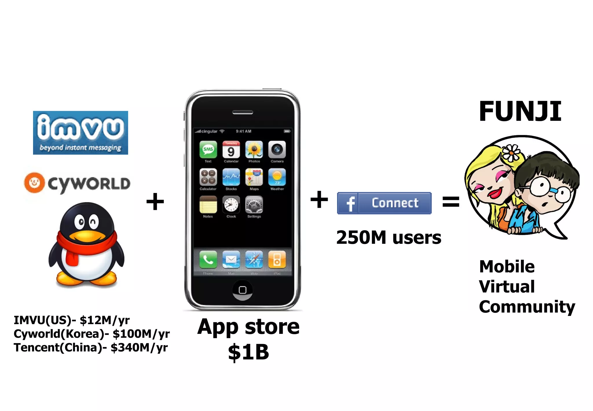 The document discusses the growing market opportunity for mobile virtual communities that allow Generation Me, consisting of 200 million teens and young adults, to express themselves and socialize. It notes that mobile phone usage among teens in the US will soon surpass desktop usage, and that iPod users tend to be younger than iPhone users. It introduces Funji as a mobile virtual community that will provide a space for teens to freely self-express and achieve through mobile activities and content while socializing with others.